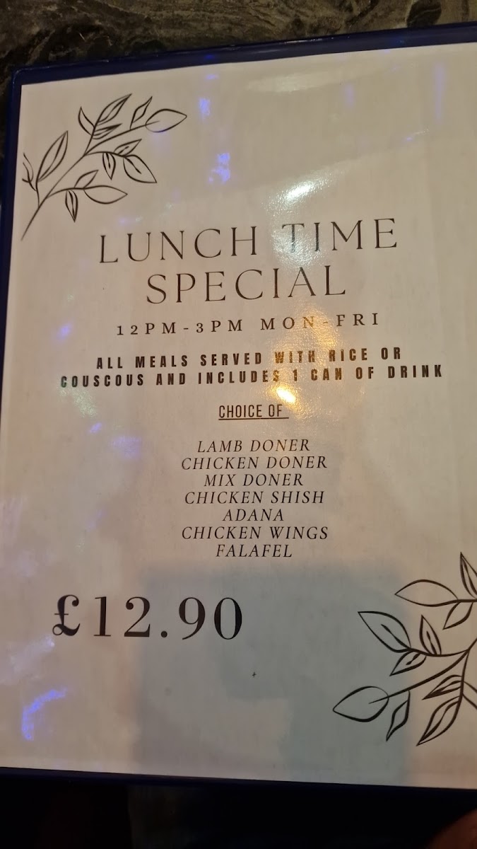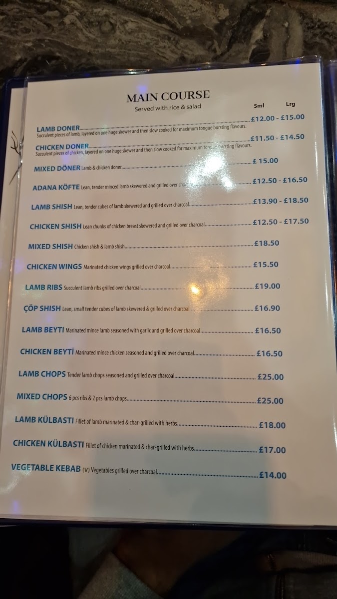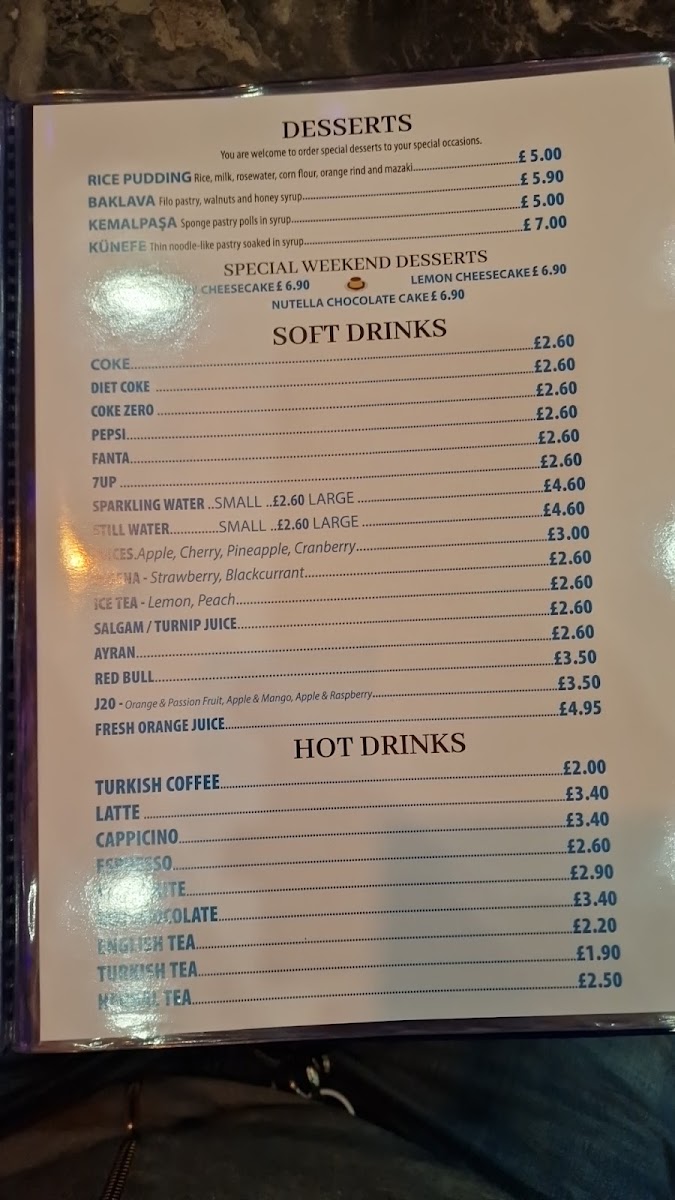Welcome to Efsus Restaurant, located at 314 High St, London EN3 4HF, where culinary delights await! Our menu is a vibrant tapestry of flavors, featuring exciting specialties like Zoo Loco and Friky for those adventurous at heart. Don't miss the golden-crusted Kuaky and our savory Vegetable Kebab, both of which promise to tantalize your taste buds. For the meat lovers, we offer succulent Chicken Külbasti, mouthwatering Lamb Külbasti, and an unbeatable selection of Mixed Chops and Lamb Chops. And if you're feeling something hearty, try our Chicken Beyti̇, a dish that's as delicious as it is satisfying. Join us at Efsus Restaurant and indulge in a dining experience that’s rich in flavor and tradition! Explore our menu, and we’re sure you’ll find a new favorite to cherish!